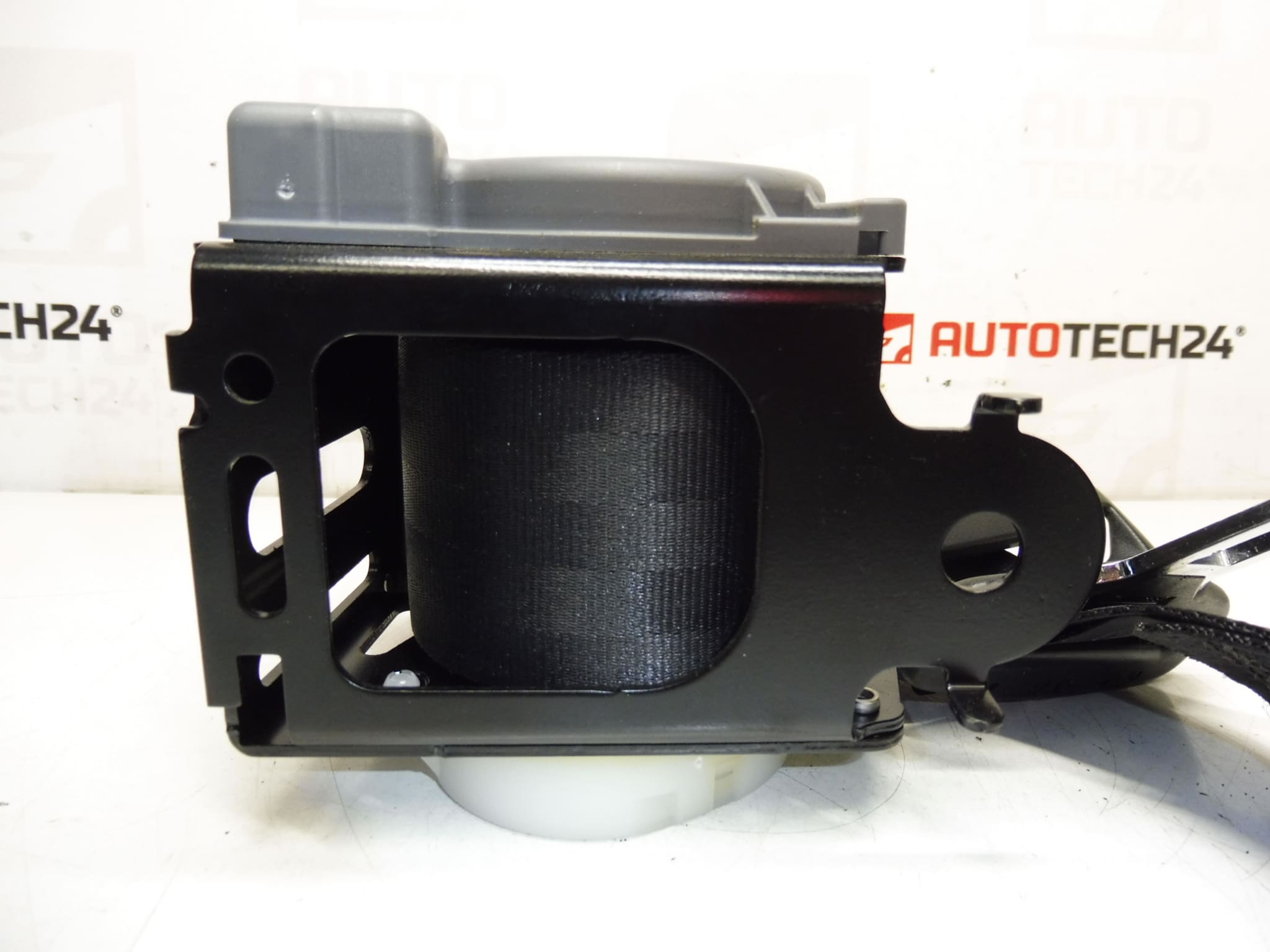 - Plaats de gebruikte riem in de juiste positie, zodat deze niet gedraaid is en het oprolmechanisme in dezelfde richting staat als het originele onderdeel.